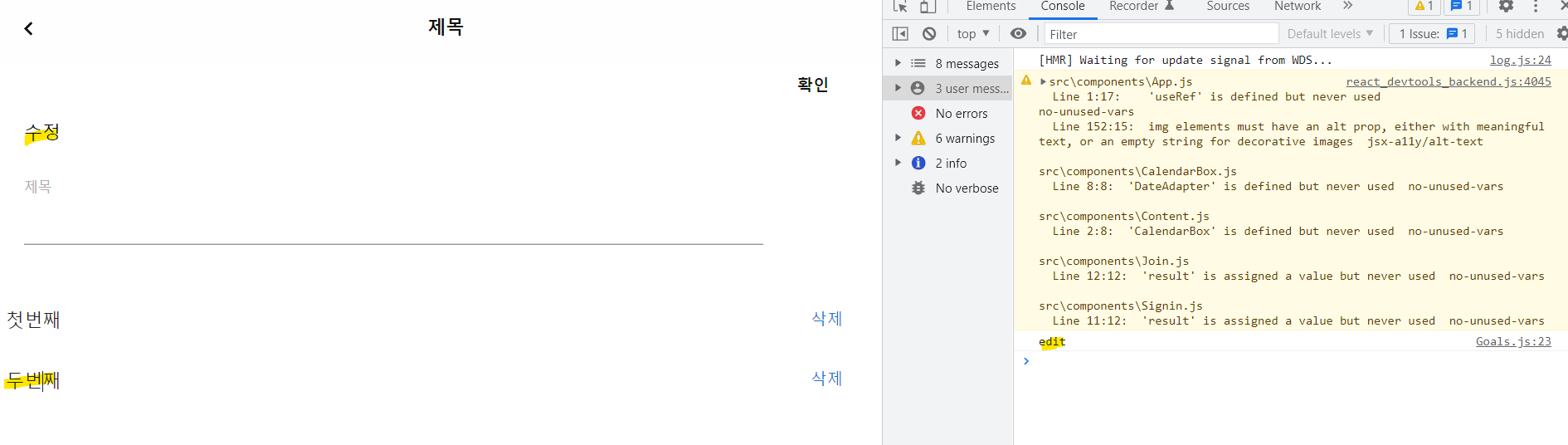 ๊ทธ๋์ ๋ค์ Goals ์ปดํฌ๋ํธ๋ก ๊ฐ์ editEventHandler๋ฅผ ๋ง์ ธ์ฃผ๊ธฐ๋ก ํ๋ค.