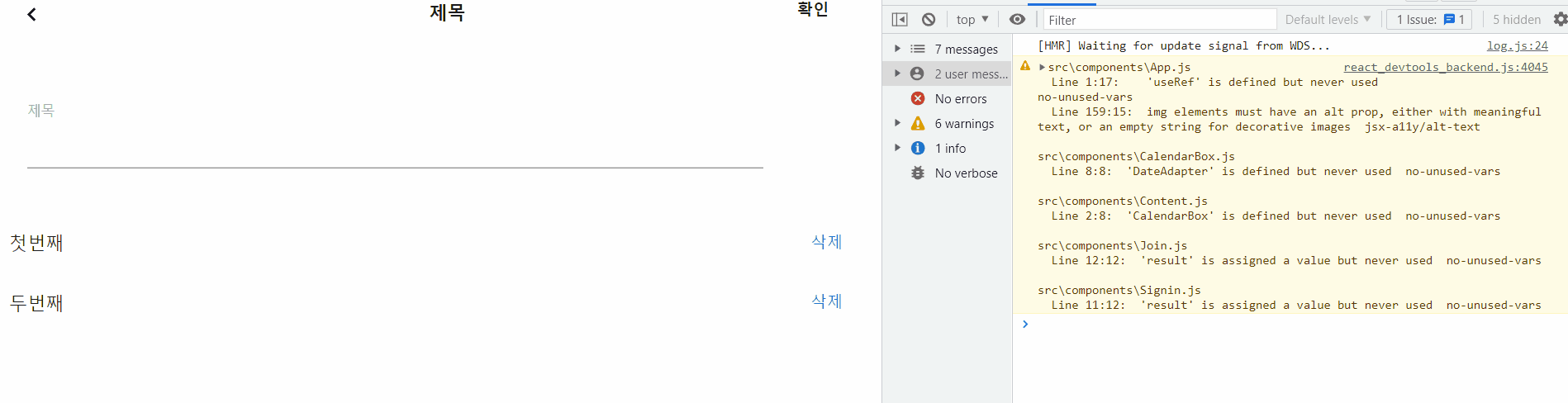 let readOnly = props.readOnly; let readOnlyChange = props.readOnlyChange;๋ชฉํ ์์ ์ด๋ฒคํธํธ๋ค๋ฌ ํจ์์ readOnly๊ฐ ๋ณ๊ฒฝ๋ ์ ์๋๋ก ํด์ฃผ๊ณ console.log(readOnly)๋ก ์ ๋ฐ๋๋์ง ํ์ธํ๋ค.