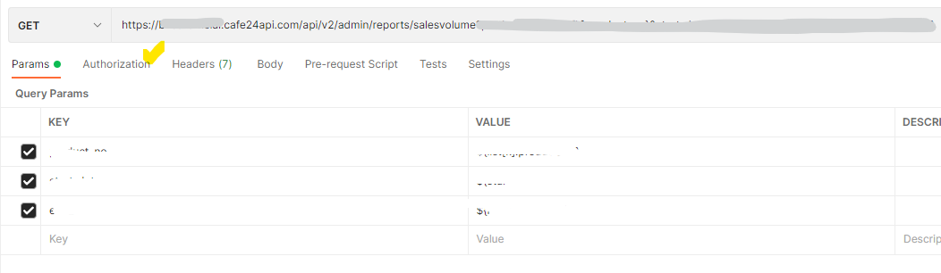 내가 볼 API는 salesvolume API인데 해당 주소가 이미 코드화 되어 있어서 붙여넣기 했다.